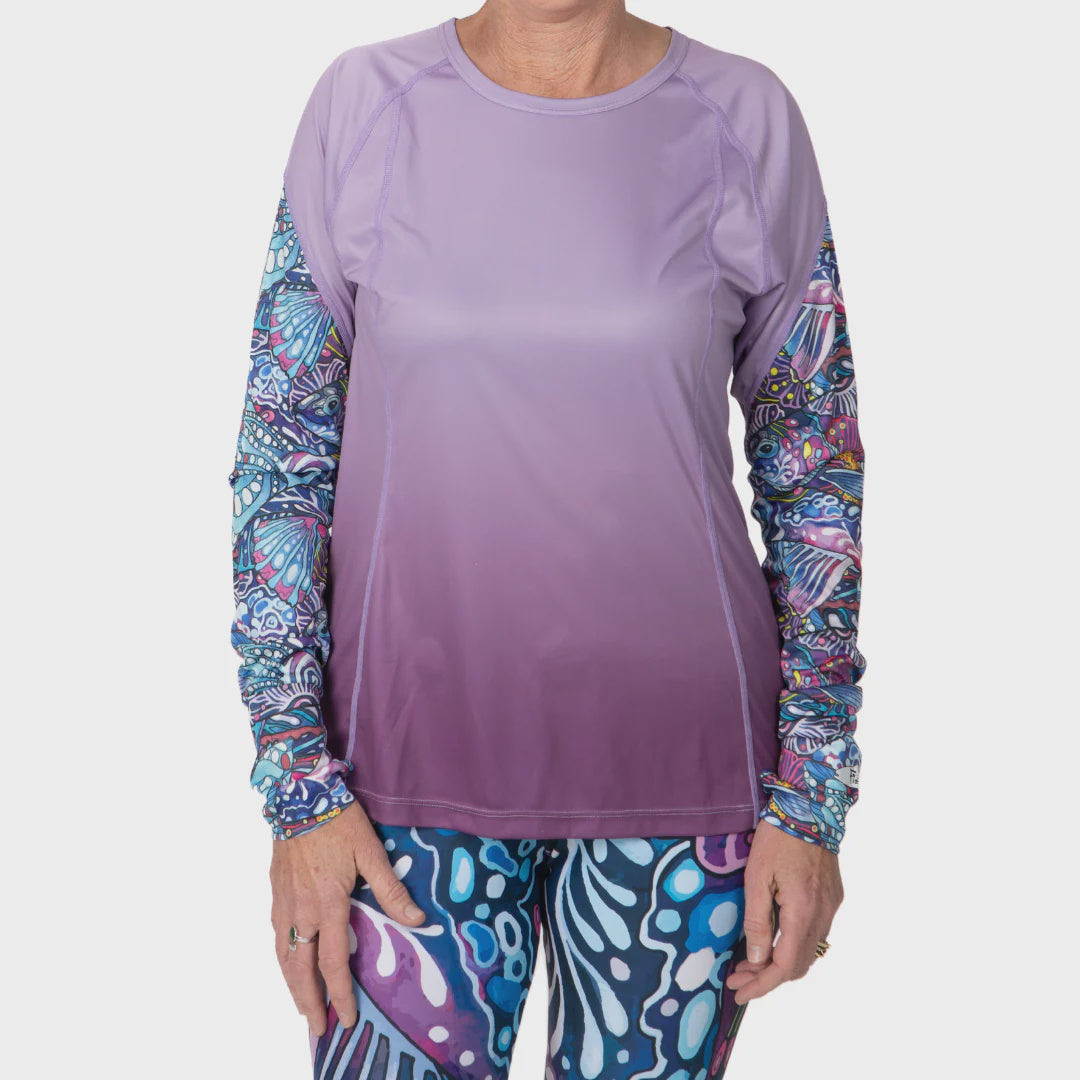 Featuring a fun new ombre, the Backcast Sunshirt is designed for sun protection, adventure, and everyday wear. With quick-drying material and a UPF 50+ rating, it's perfect for water activities or mountain hikes. The sleeves, with thumb holes, offer extra sun coverage and add a stylish touch. Lightweight and breathable, this shirt is your go-to option for all outdoor activities, ensuring you explore in comfort and style with its vibrant ombre update.