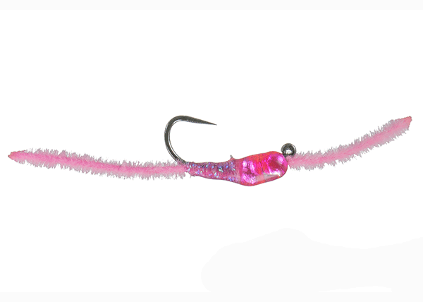 This worm pattern has two tungsten beads, so it sinks great. It is also tied on a jig hook, so it does not get hung up on the bottom of the river.