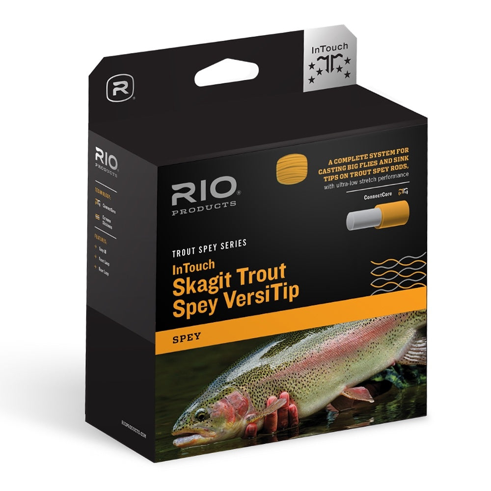 Make Trout Spey Fishing fun and simple with Rio's InTouch Skagit Trout Spey Versitip Kit. Take the guess work out of what to buy with this one-stop-shopping system. The new Skagit Trout Spey head throws sink-tips and streamers with ease with it's short head design for loading today's modern short speys, micro speys, and trout speys.